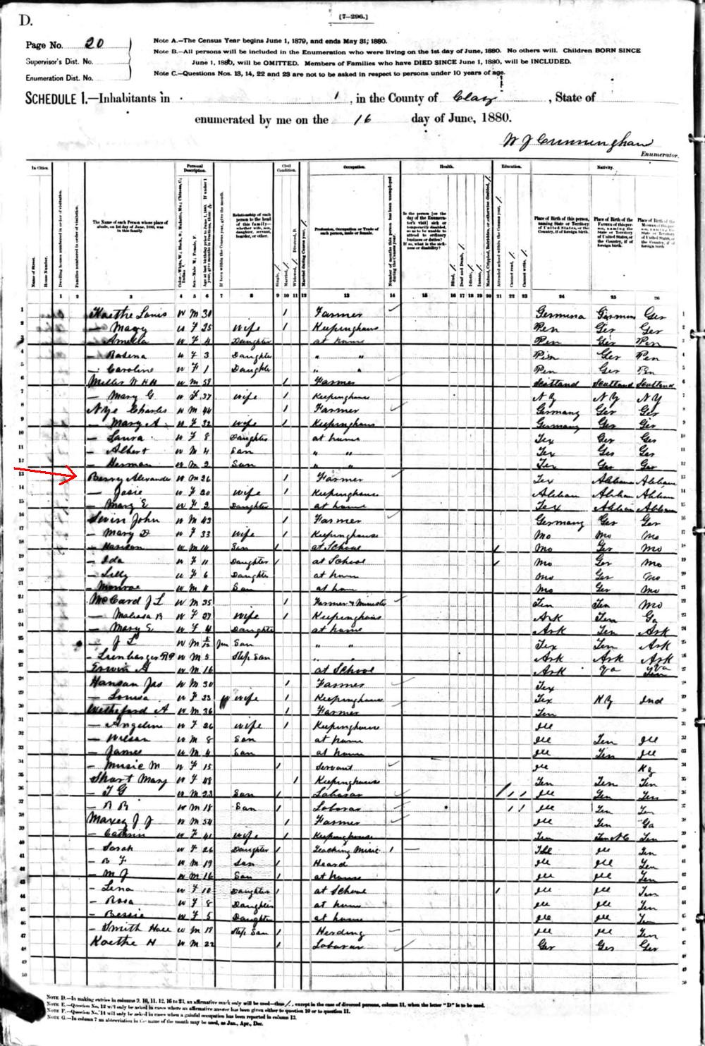 ![]() | Alexander H. Berry listed in the Texas 1880 Census |