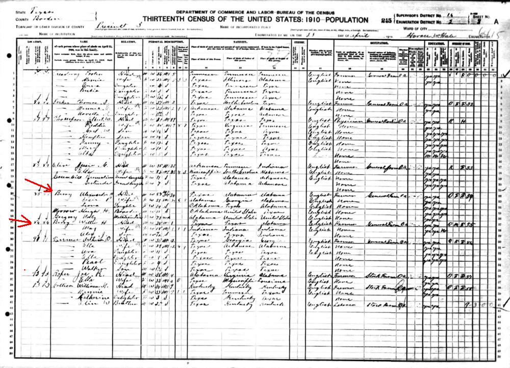 ![]() | Alexander H. Berry listed in the Texas 1910 Census |