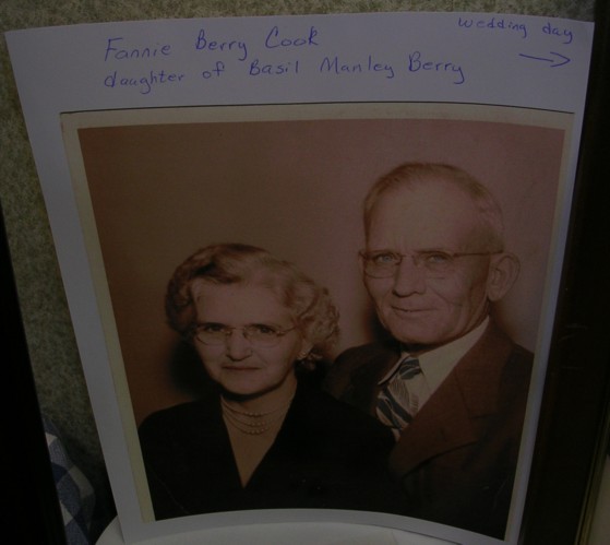 Pearl and Fanny were living with their parents in the 1910 census. Both parents may have been in bad health and the girls were staying there to help with keeping house and running the farm for their parents. This is speculation on my part. In 1915 after Fanny Berry’s father died she was married. The wedding picture is on the left. Below and on the left is a picture of Fanny Berry Cook sometime after 1915. The lower right picture is Pearl