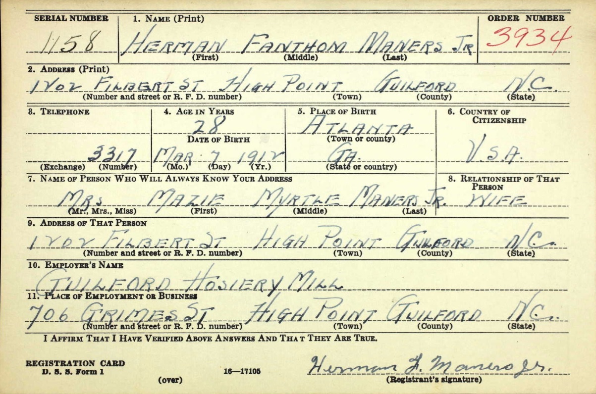 - Addie Lena Berry and Hampton Fantom Manners, Spaulding GA & Guilford County, North Carolina.
