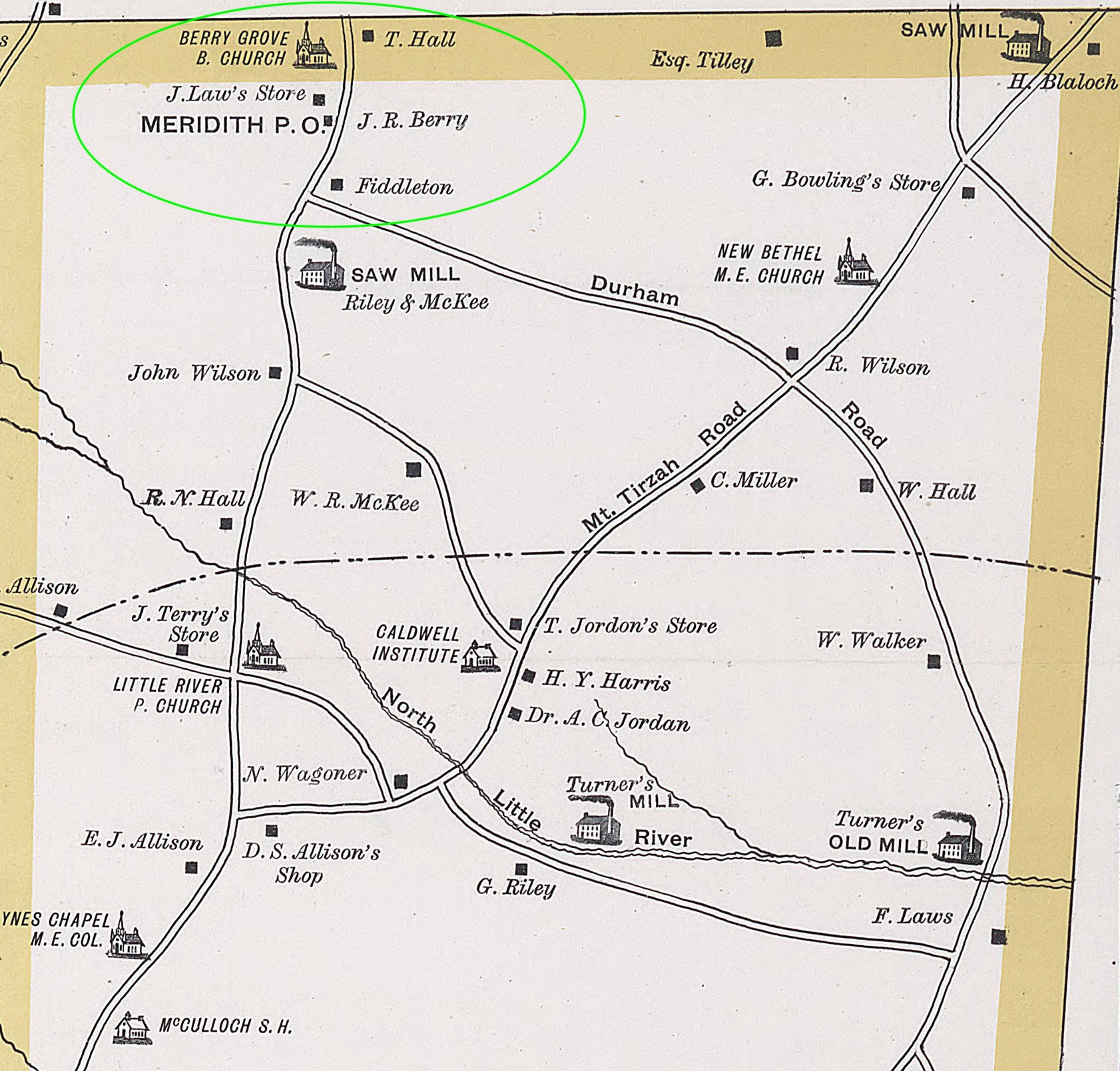 1891 Map of Berry’s Grove and Fiddleton in N. Orange County, NC#