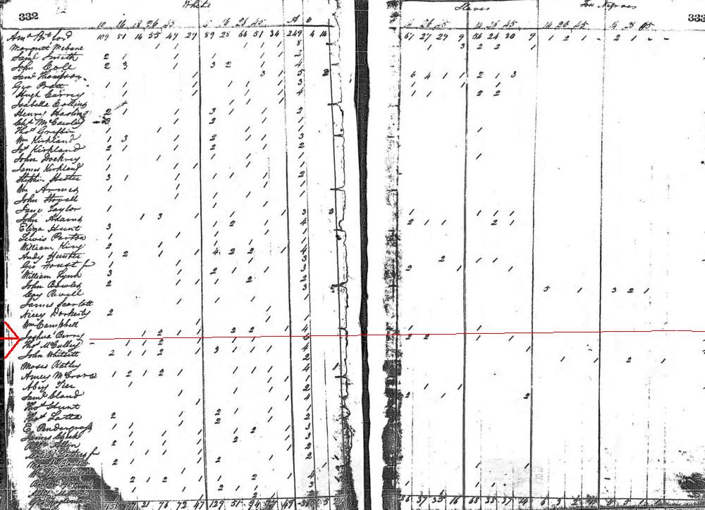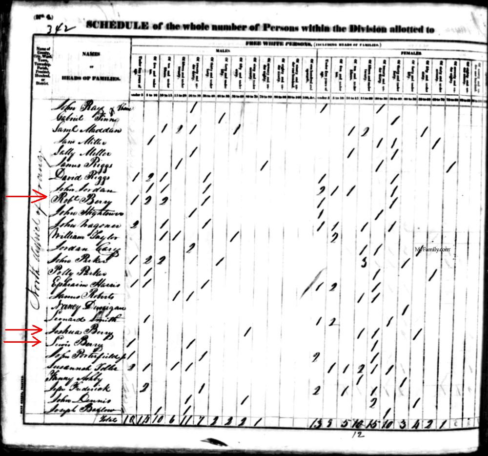 Joshua Berry in the 1830 Orange County, North Carolina Census BELOW