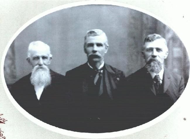Apparently Joshua and his family only lived in Indiana for a short time because in 1854 he was in Benton County Iowa. The family was still living in Benton County Iowa in the 1860 census but has not been located in the 1870 Census Joshua died on May 29th 1879 at the age of 78 years, 1 month and 14 days old. Joshua is buried at Mount Pleasant Cemetery in Canton Township, Benton County Iowa. The man on the left in the picture above may be Joshua Berry Jr. and two of his sons. The Gentleman in the center is William James Berry and the one on the right would be either Lewis, Harrison, or Robert Berry