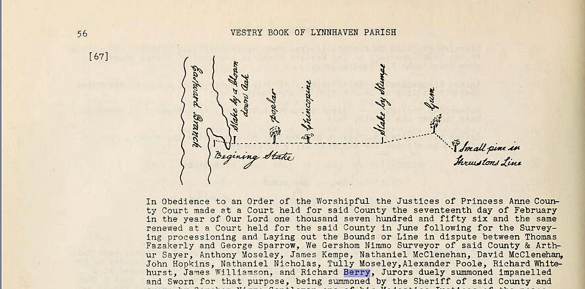 The document listed below proves that Richard Berry was still in Princess Anne County Virginia on February 17 1756.