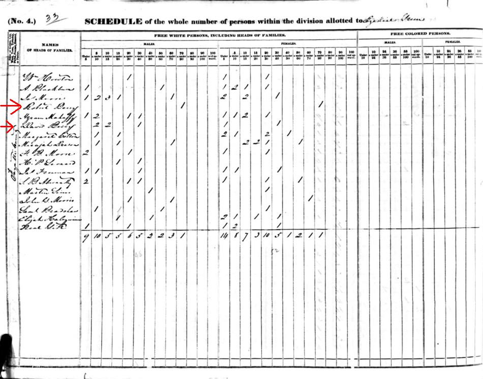 The 1840 Census indicates that Robert Berry Jr and his wife#