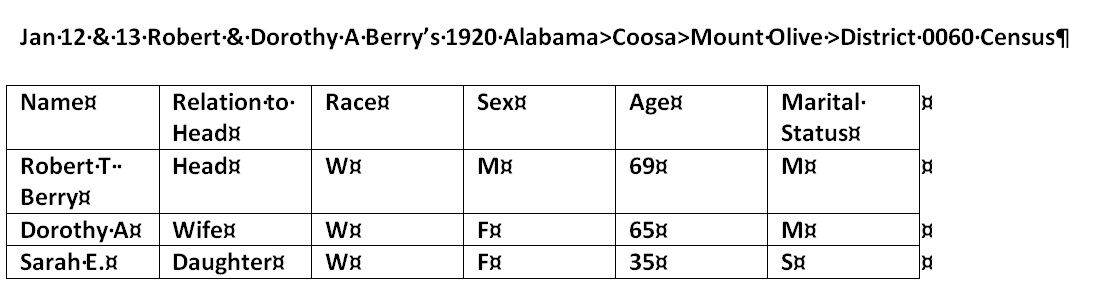 In 1920 Robert T Berrys wife was listed as Mary Ann. This led to speculation that Robert T Berry had remarried. In the chart below the birth year was the same. Dorothy Ann Robinson Berry is buried beside her Husband