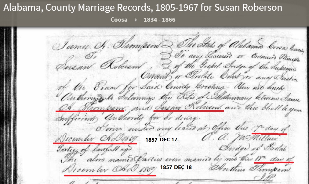- Susan Roberson was living with her mother Eda (Edith) Roberson was living on the next farm adjoining her Father and Mother and listed head of household in the 1850 Coosa County Alabama Census shown below and her husband Thomas Roberson was gone.