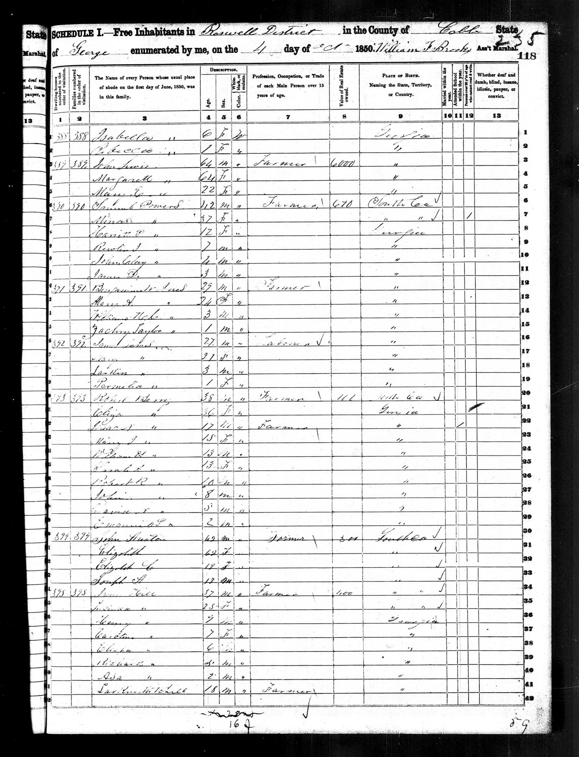 - 1850 Cobb, Roswell Georgia US Census - Robert R. Berry 10 Years old[efn_note]1850 Cobb County US Census - Robert R. Berry 10 Years old[/efn_note]
