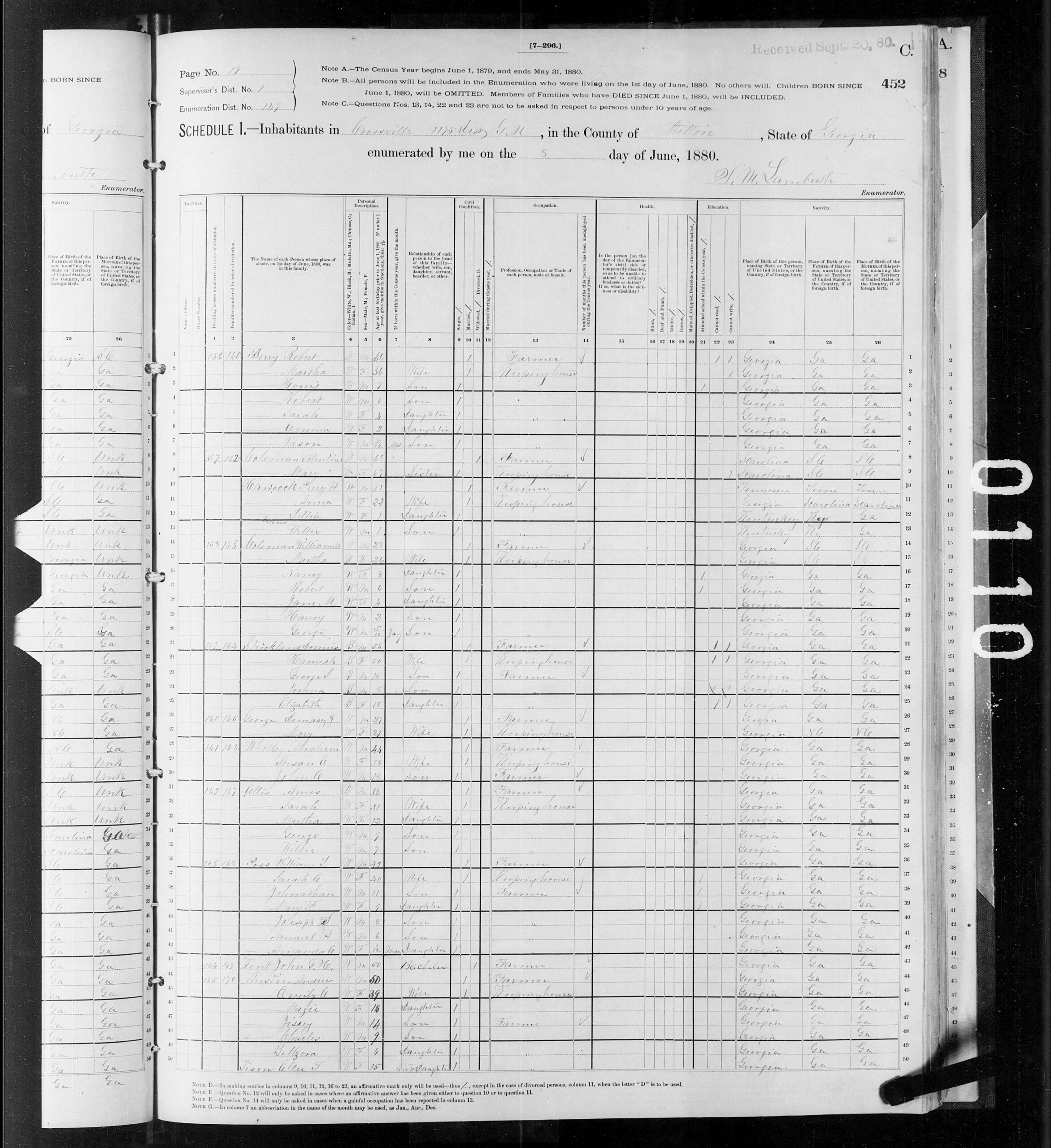 - 1880 Crossville, Milton, Georgia US Census - Robert R. Berry 36 Years old[efn_note]1880 Crossville, Multon Georgia US Census - Robert R. Berry 36 Years old[/efn_note]