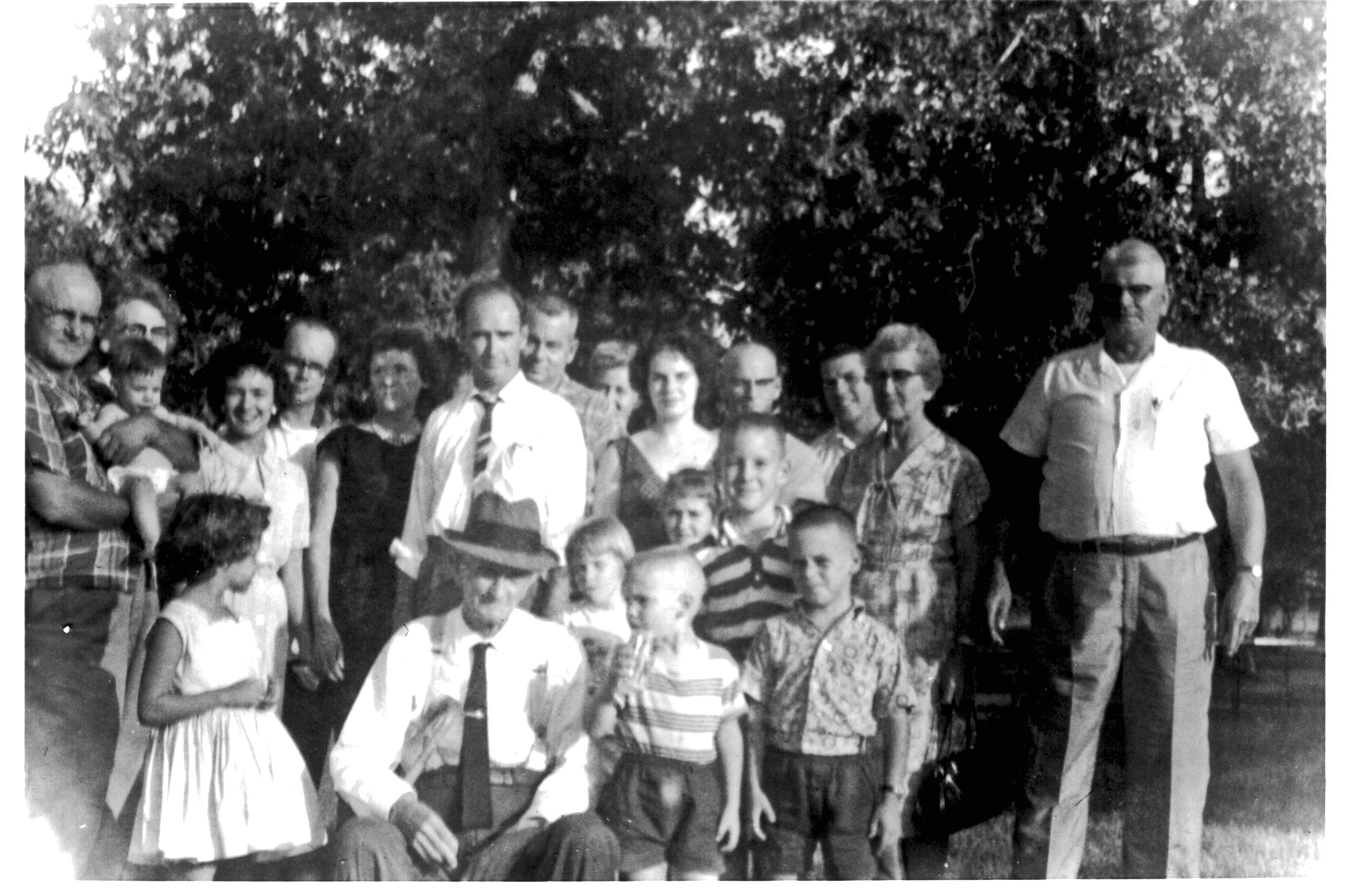 Three of the six children of Wiley P. and Ida Ann Wilson Berry and eight of their sixteen grandchildren children. This picture was taken about 1944.