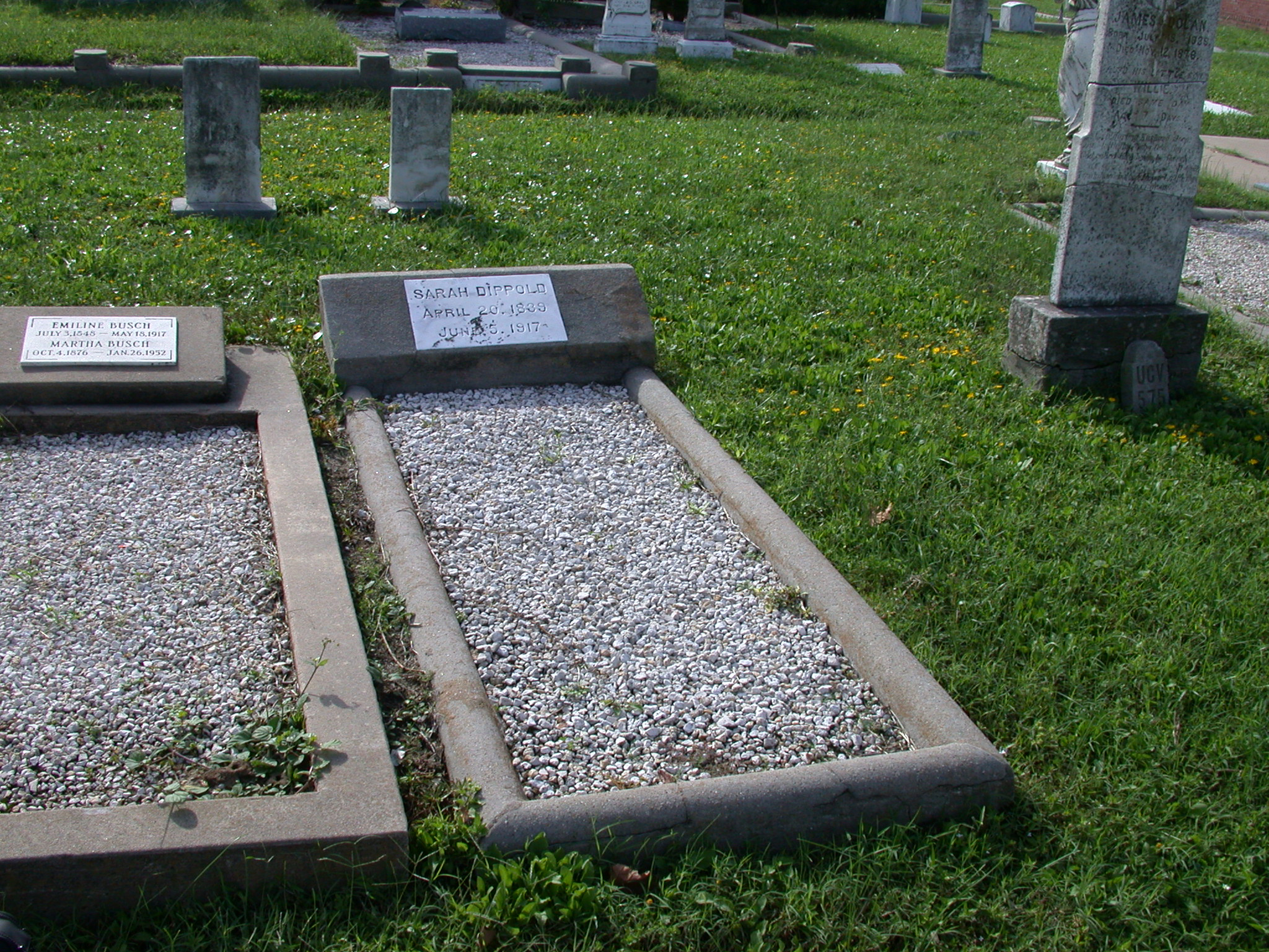 Galveston Texas on June 5th 1917 We were able to find Sarah Berry Dippold’s grave in 2006 while I was staying in Houston for medical reasons. The grave is located in the Trinity Episcopal Church Cemetery which is located in Galveston Texas. She is buried in Block # 100 plot 18 of that Cemetery. I was unable to locate her husband but he may still be buried there. This Cemetery has been raised several times, as it keeps sinking they haul in more dirt . Each family is responsible to see that their relatives headstones are