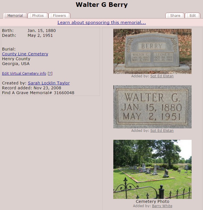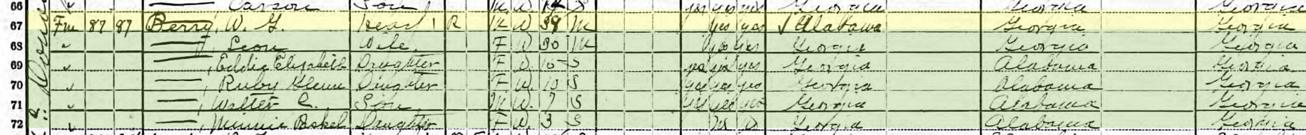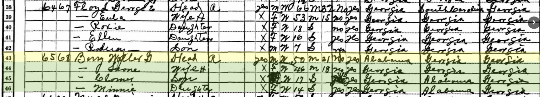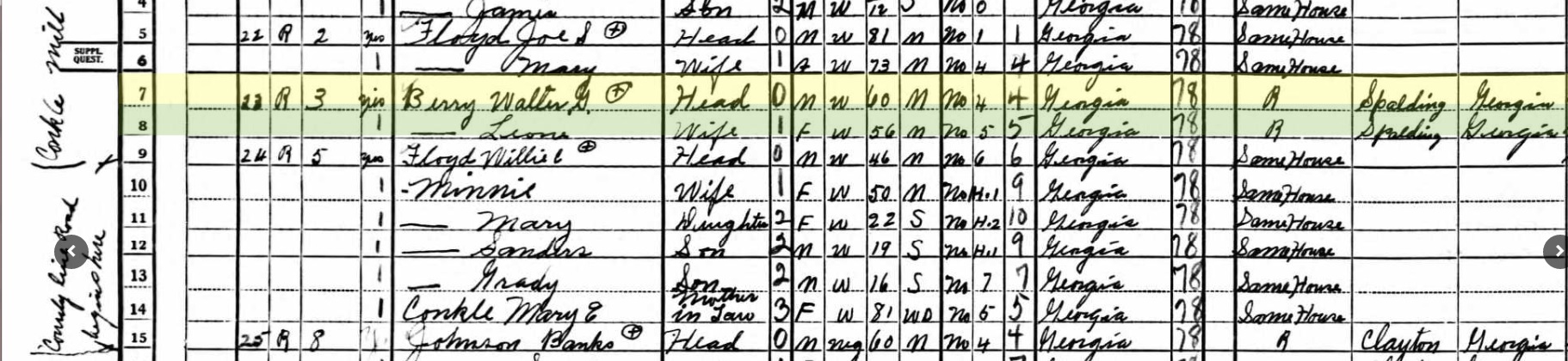 1900 United States Federal Census for Walter Berry Georgia Henry Flippen District 00471910 United States Federal Census for Walt Berry Georgia Henry Militia District 486 District 0064
