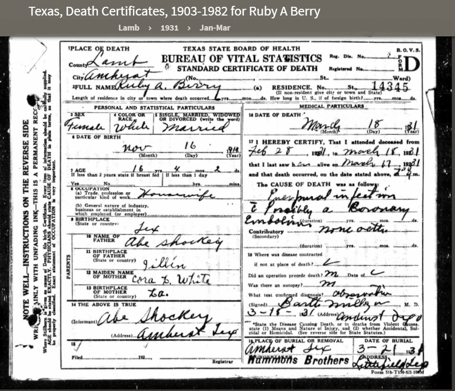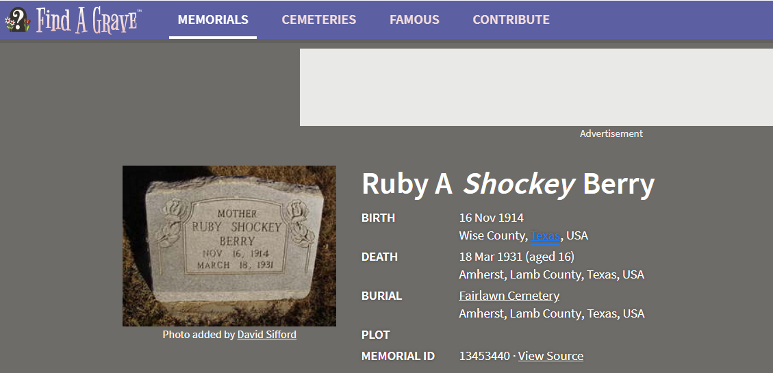 Willie Howell Berry was born in Clay Co. Tx 1917 and died in Lamb Co. Tx.