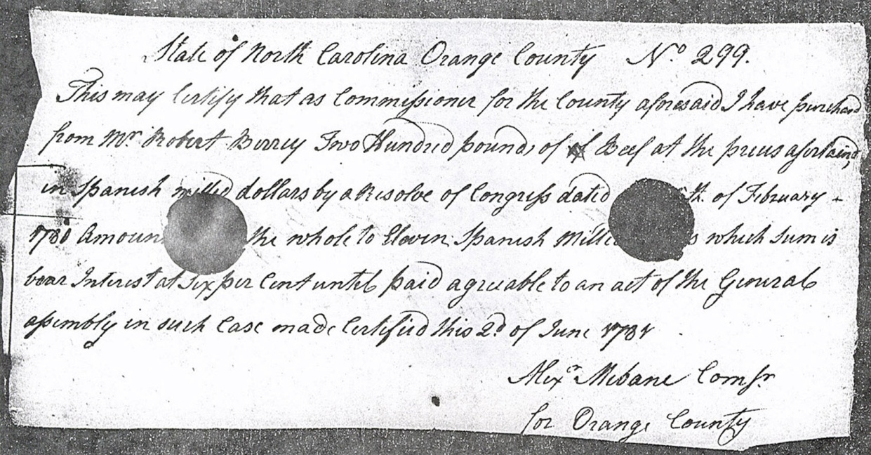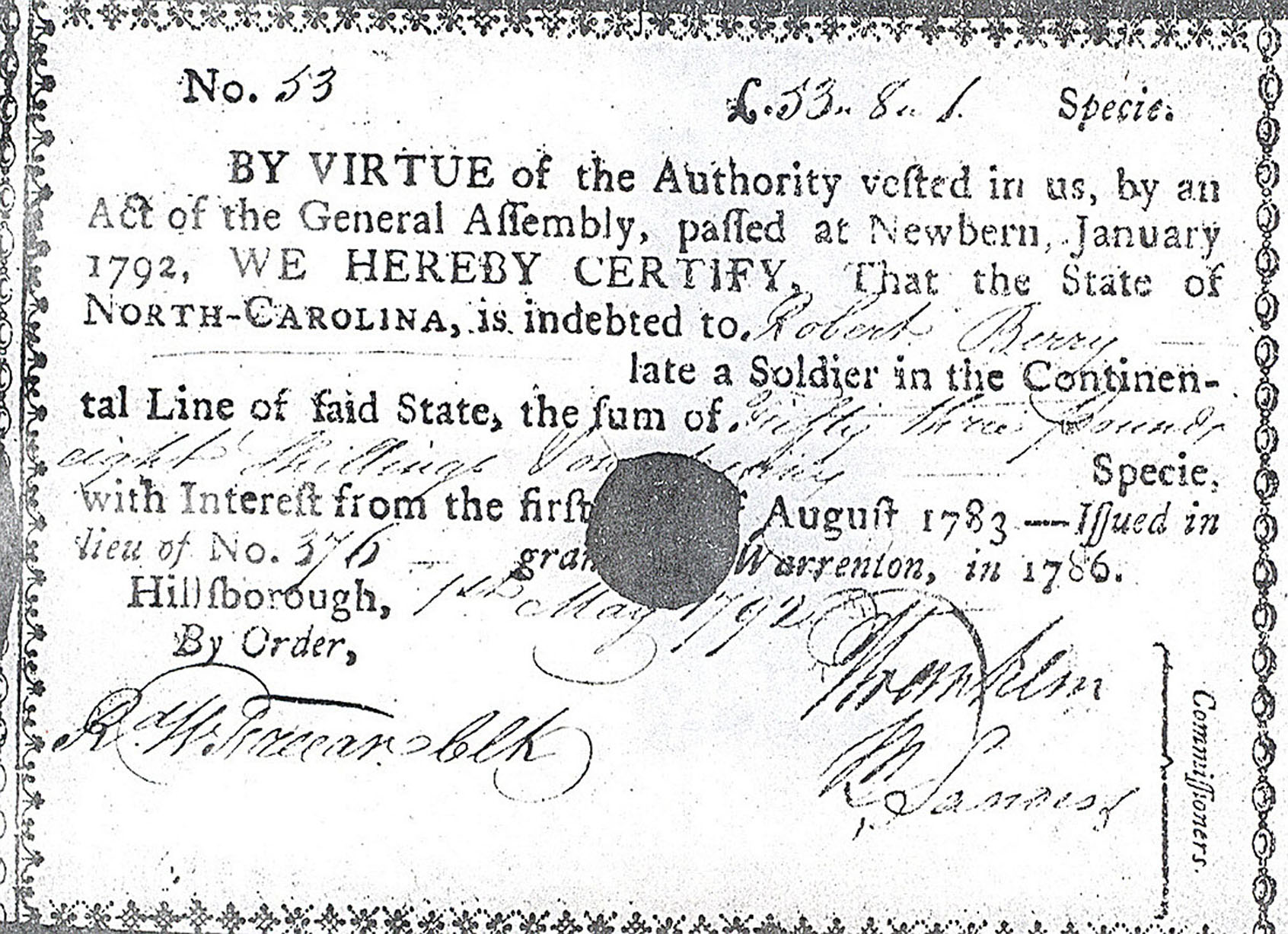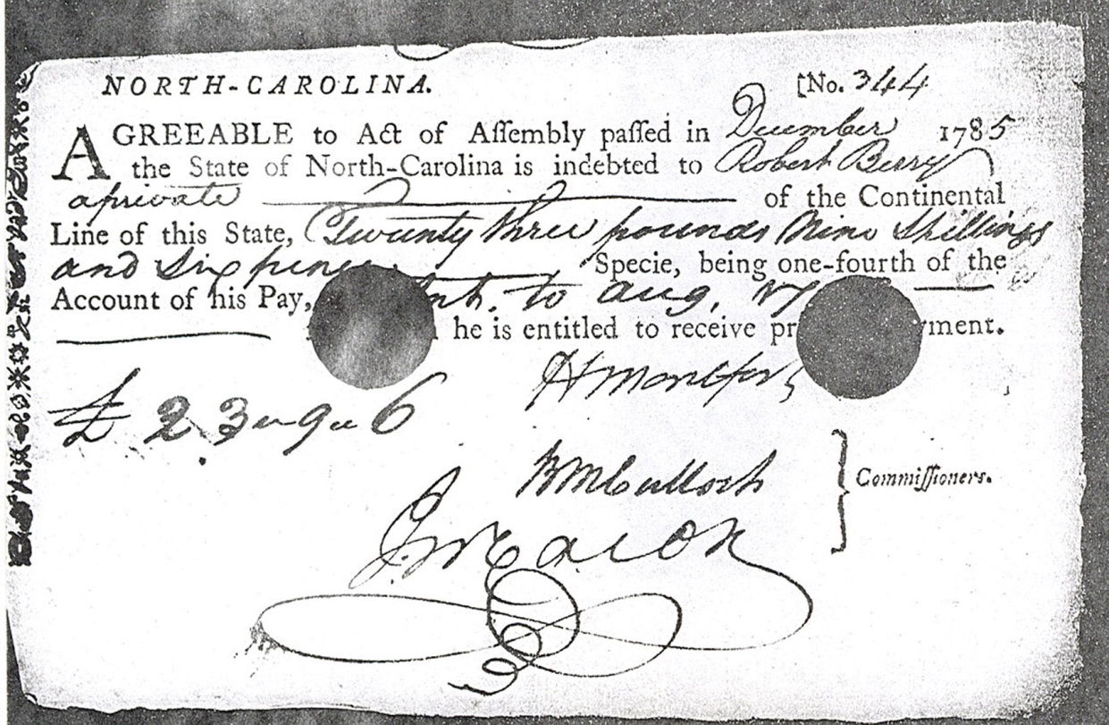 The newly formed state had no money and paid the Patriots with pay vouchers and land grants. Some of the land granted in 1780 had been confiscated from the Tories. This would have been considered treason only a few years earlier, but North Carolina was no longer an English Colony after 1776.