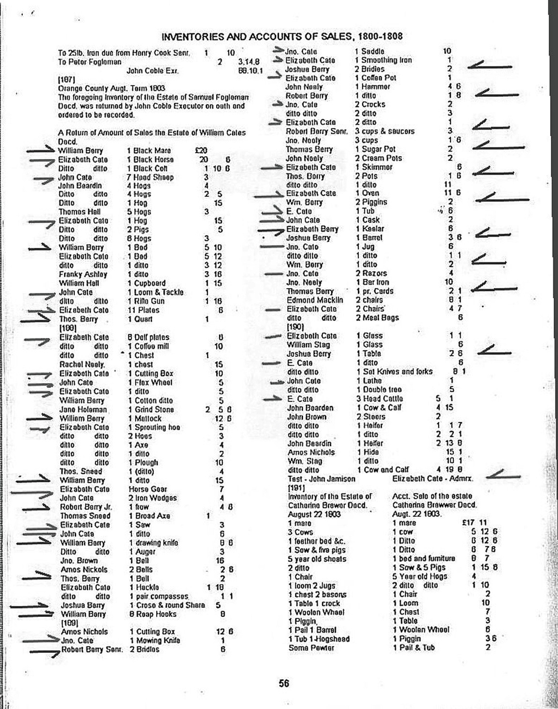 Estate Sale of William Cate in the Summer of 1803#