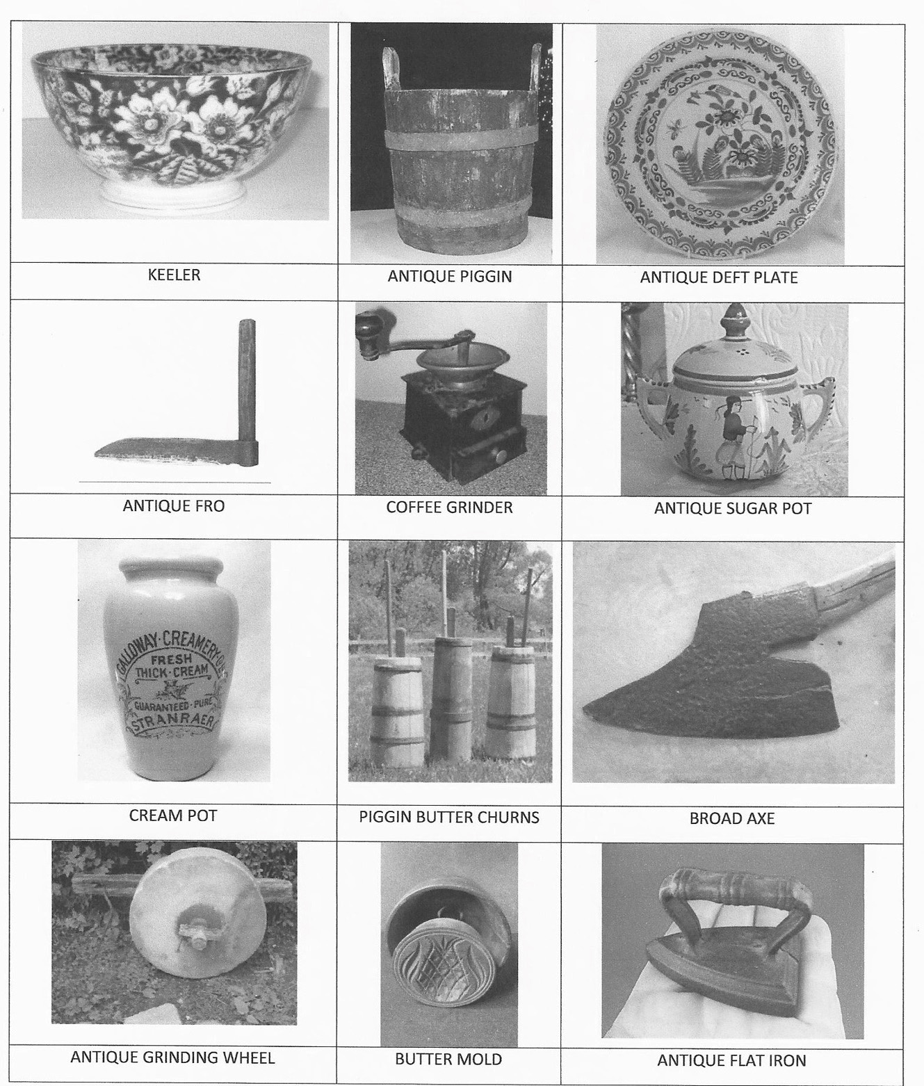 William’s wife, Elizabeth Cate, bought: 1 skimmer, 1 tub, 2 chains, 2 meat bags, 2 beds, 1 glass, 1 set of knives and forks, horse gear, 2 hoes, 2 axes, and 1 plough.