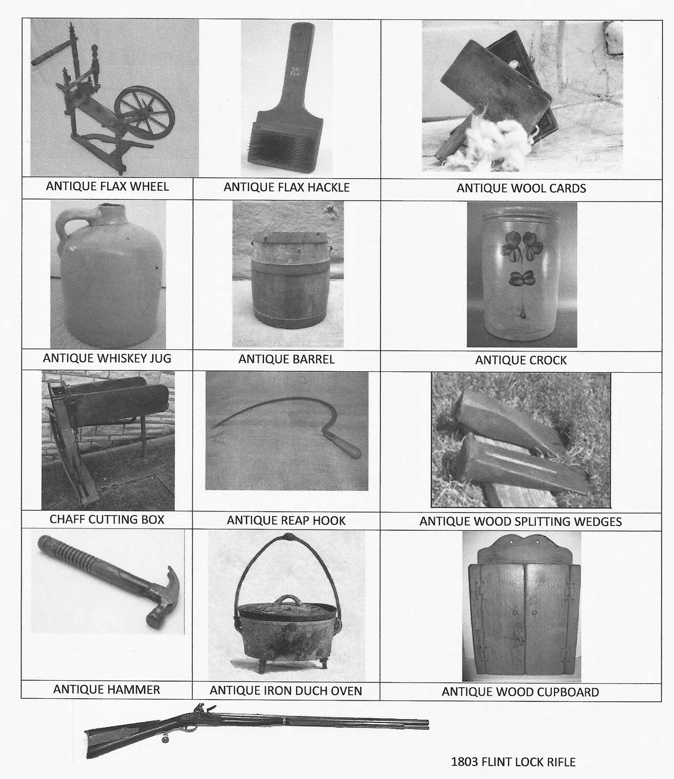 John Cate bought 1 flax wheel, 2 iron wedges, 2 jugs, 4 crocks, 1 rifle.