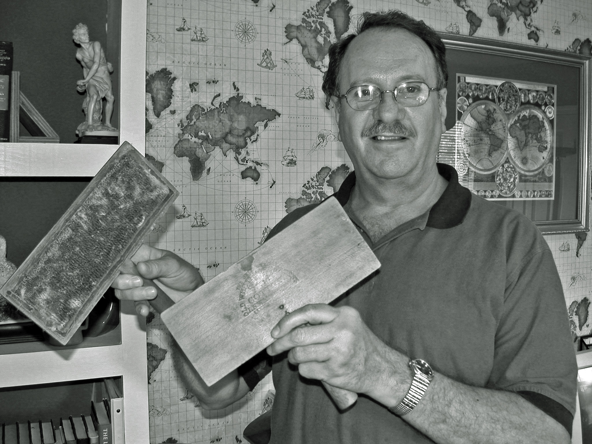 Thomas Berry bought 1 pair of cards in 1803. In 2005 John Allen Berry, who is a descendant of Thomas Berry, is holding a pair of cards that was passed down through the Thomas Berry family. These could very well be the same pair of cards Thomas Berry bought two hundred and two years ago.