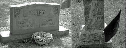 David Berry, his son Isaac Berry, his grandson Jim Dave Berry, his great-grandson Ode Berry, and his great-great-grandson Ernest John Berry are all buried in the Jackson Cemetery near Cypress Inn, Tennessee.