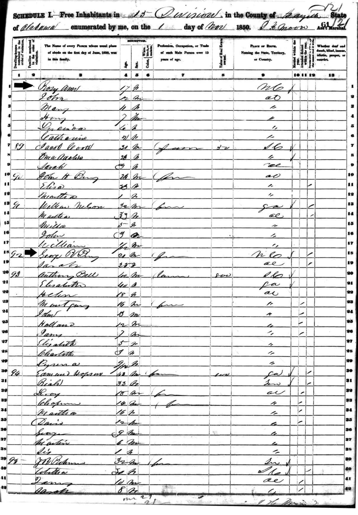 During past research, we had assigned William Clarence Berry to the wrong parents twice. It was caused by a simple mistake. Joshua Berry’s son Robert Berry married Sally Cates in Person County, North Carolina. William Clarence Berry married Sally Bowles in Orange County, North Carolina. We had located William Clarence Berry and his three children living in Fayette County, Alabama, in the 1840 census. We also located Sally Berry, who was head of household in the 1850 Orange County, North Carolina, census, living with two daughters. We assumed that this Sally Berry was Sally Bowles Berry. The two daughters’ names were Sarah age 14 and Rachael age 11. The ages of these two girls fit into the William Clarence Berry family very nicely. Based on this information, we thought William Clarence Berry was a son of Joshua and Nancy Ellison Berry. What did not make sense was why William Clarence Berry went to Alabama and left a wife and two daughters in Orange County. Shortly after this, we found that Rachel and Sarah had been named in Joshua and Nancy Berry’s spinster daughter’s estate as heirs. William Clarence Berry was not listed as an heir. Because William Clarence Berry went to Fayette County, Alabama, we then assumed he was Robert Berry Junior’s son. We reassigned William Clarence Berry to be the son of Robert Berry Junior, who had gone to Fayette County, Alabama, in 1822. This mistake also caused us to misinterpret George Wesley Berry’s Y DNA results and assign him as a descendant of Robert Berry Junior, also.