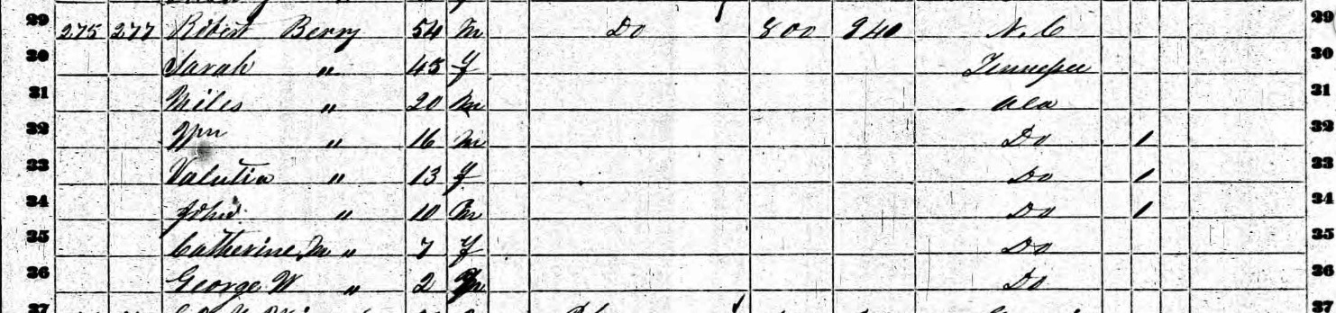 Miles Berry, William Berry, Valutia Berry, John Berry, Catherine Montgrolia Berry, and George Washington Berry.