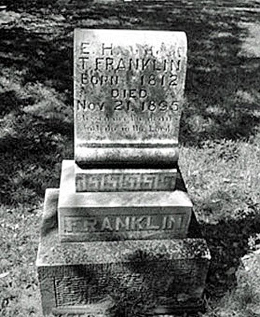 This information was copied from an email note sent by Elizabeth Robinett: “I took this picture of the grave site in Salem Cemetery, which is located in Brown County, TX: E. H. Franklin wife of T. Franklin b. 1812. I think this is Elizabeth Berry. What are the odds of an E. Franklin born 1812 wife of T. Franklin in the same county as Thomas Benjamin Franklin, who was her son? The cemetery is about 5 miles or so from where he lived.”