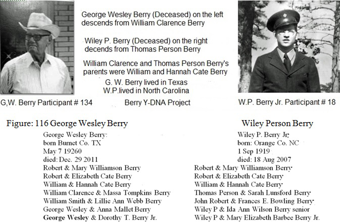 Once the results of George David’s Y DNA test became known and because it was a 100% match to our William Berry line, I knew that we had located the two missing boys in Hannah Cate Berry’s 1810 Orange County, North Carolina, census. Because of errors made previously in this family line, it became imperative to write a revised edition of my original book, “Our Berrys In Frontier America”. This was because in my original book William Clarence Berry was assigned as a son of Robert Berry Junior and Robert C. Berry was not assigned to any parents. All of the details of their relationship to William and Hannah Cate Berry are also described in detail in the paragraph about Robert’s brother, William Clarence Berry.