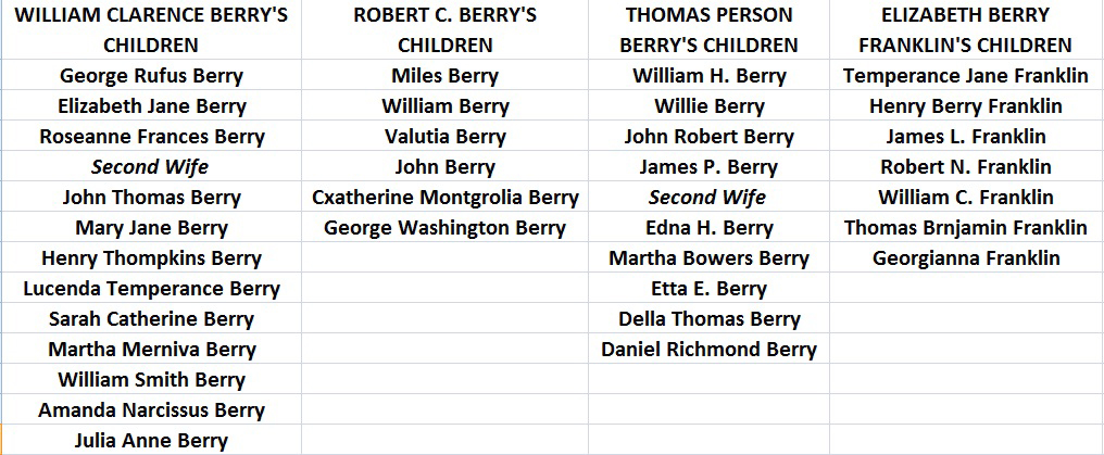 Children of Thomas Person and Lucy Brown Berry#