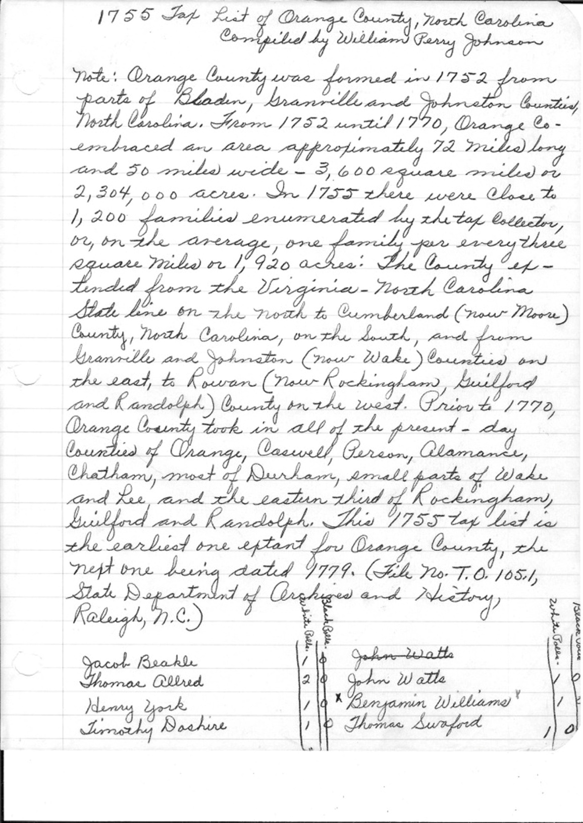 Orange County, NC, Tax List Page 1#