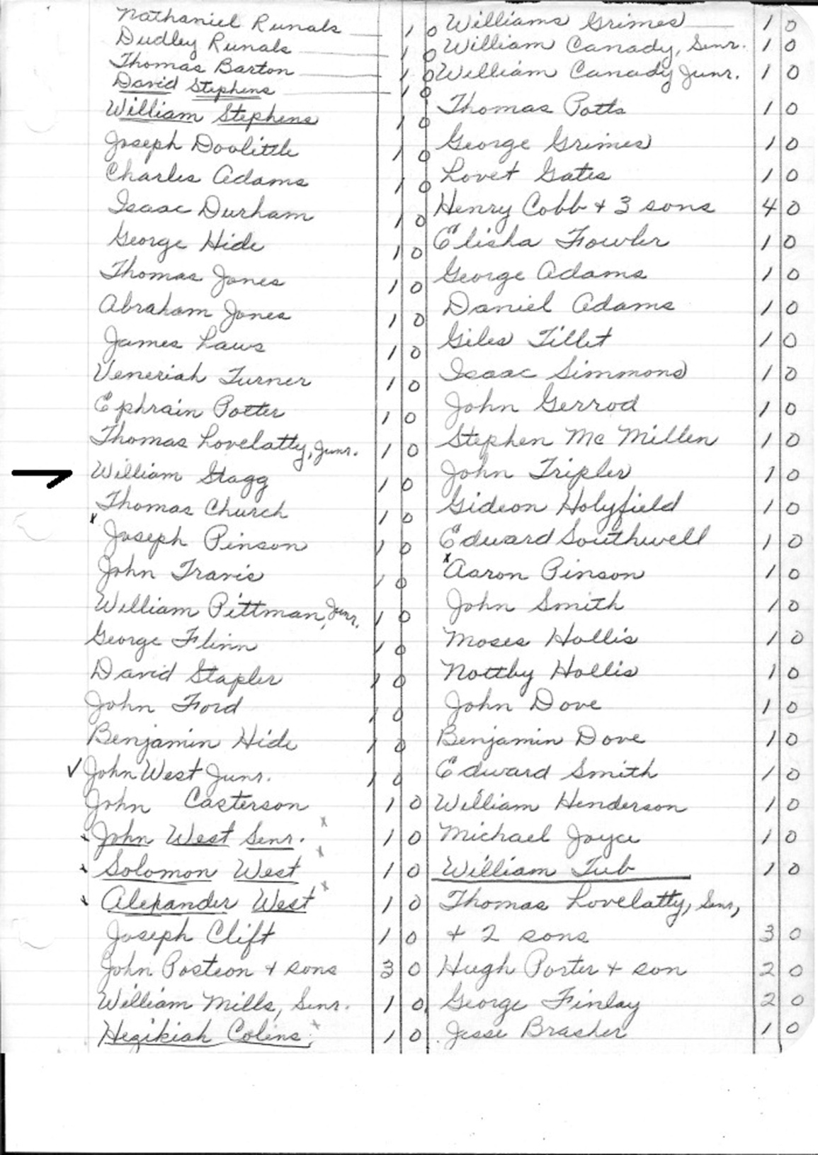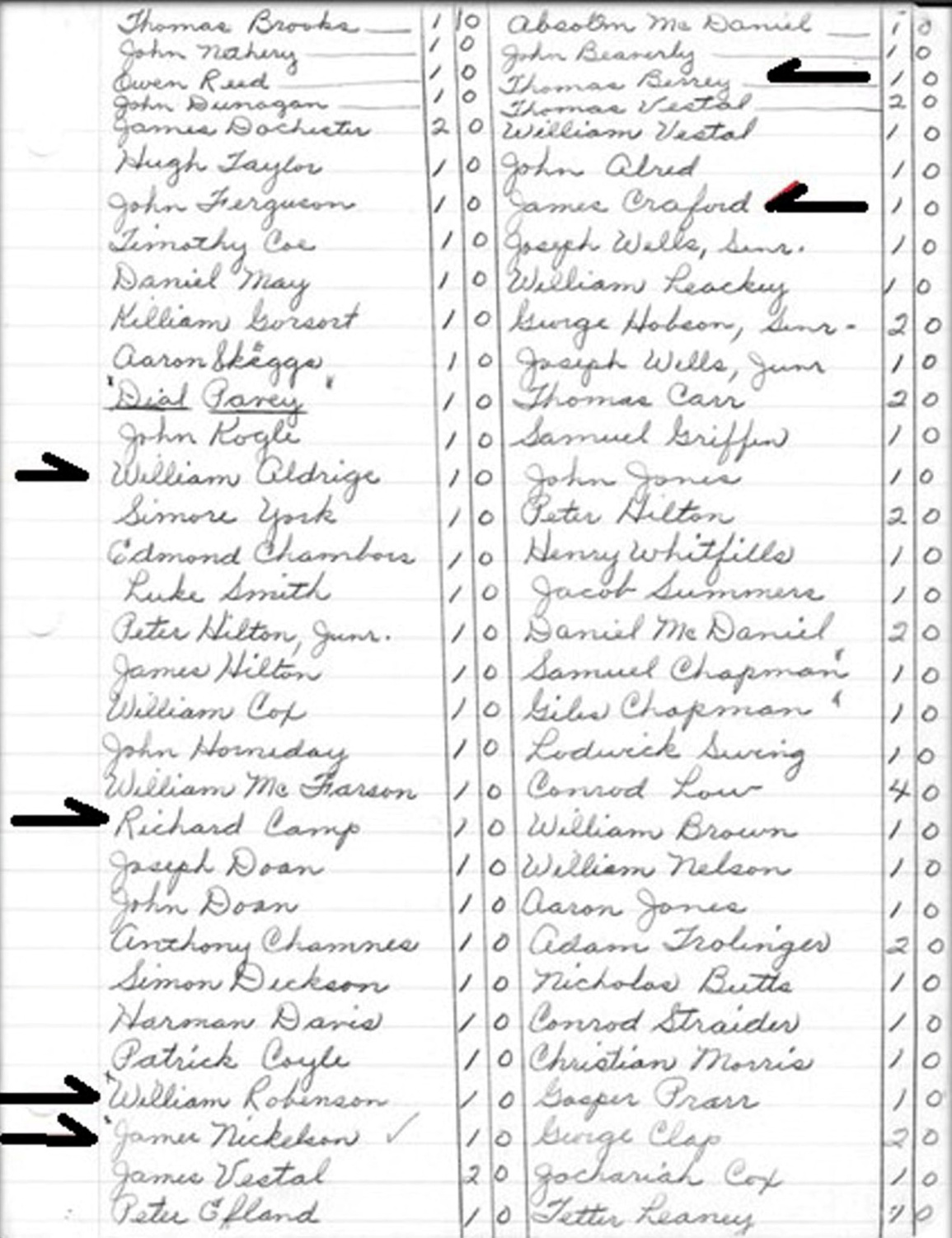 James Williamson, Robert Berry Jr, George Berry, Henry Robinson, David Lovett, Jesse Caraway, Thomas Caraway, William Caraway, Peter Martin
