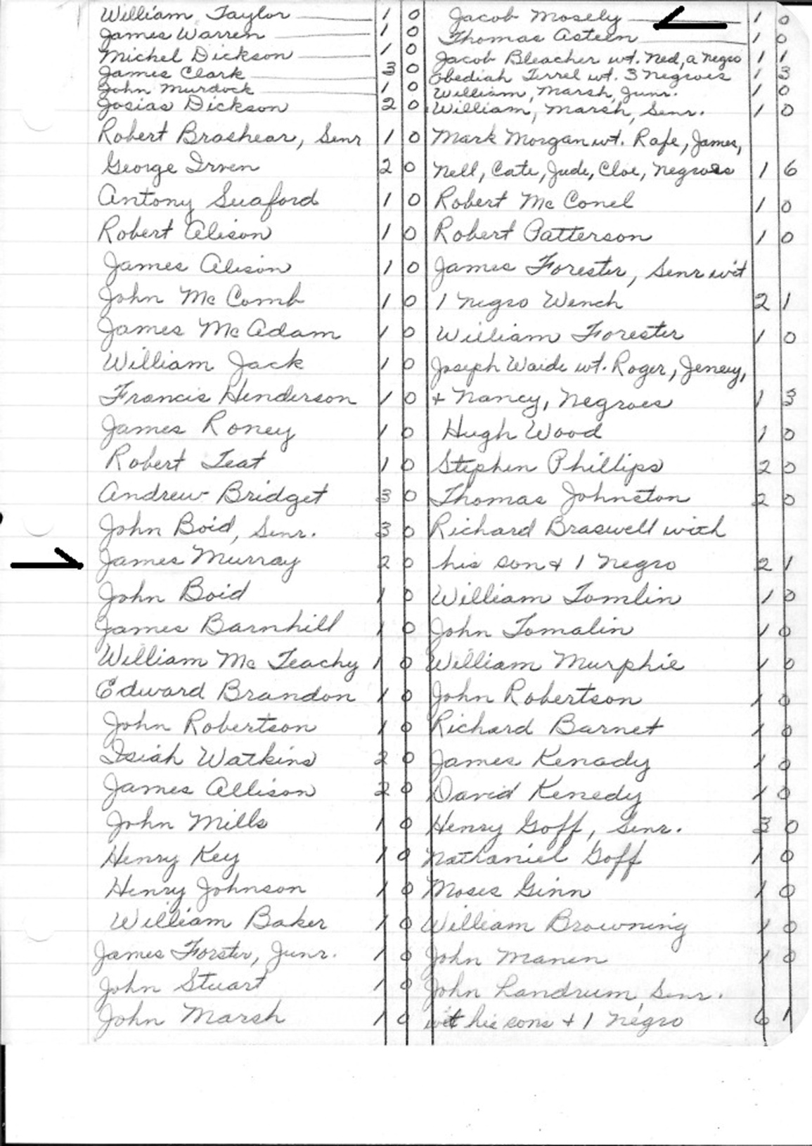 James Murray was in the 1755 Orange County Tax list.