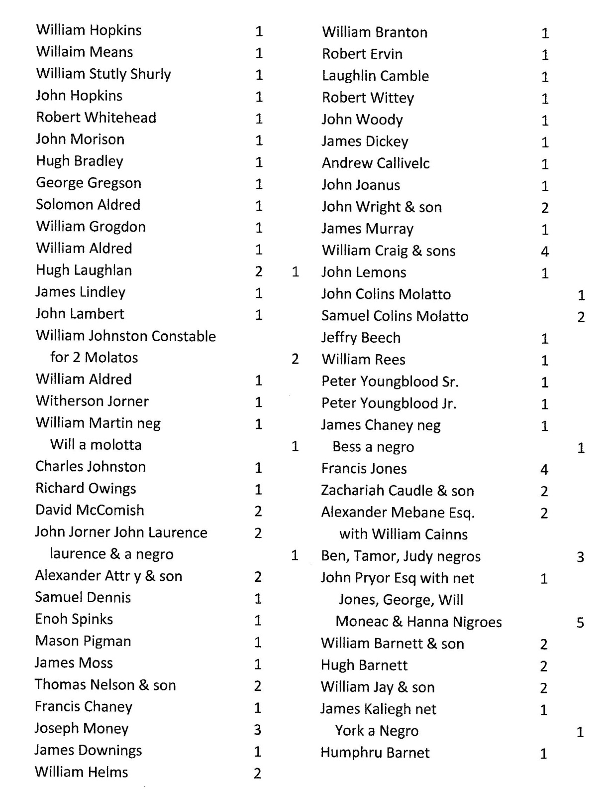 Orange County, NC, Tax List Page 2#