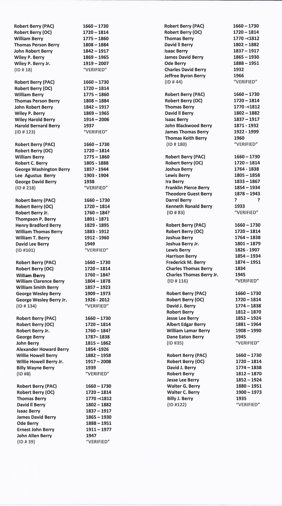 These are the thirteen YDNA Participants who match and descend from Robert Berry from Princess Anne County Virginia and Robert Berry from Orange County North Carolina#