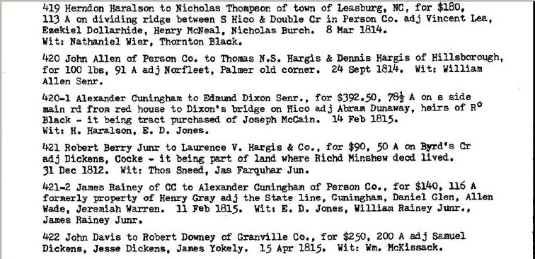 Deed Book Page 421Robert Berry Jr.'s land sale record, Person County, North Carolina.This deed book entry records Robert Berry Jr.’s land sale in Person County, North Carolina.