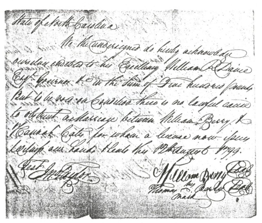 William Berry's Marriage Bond to Hannah Cate1799