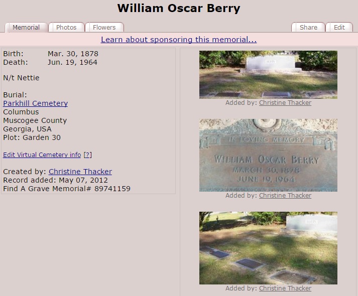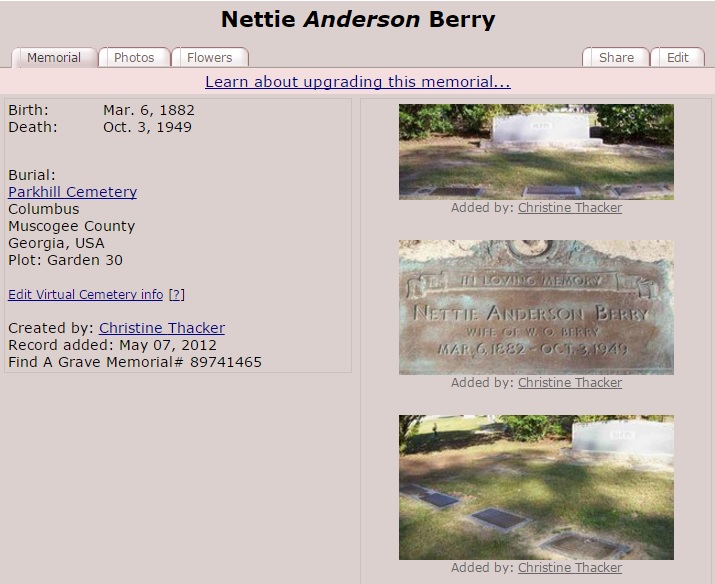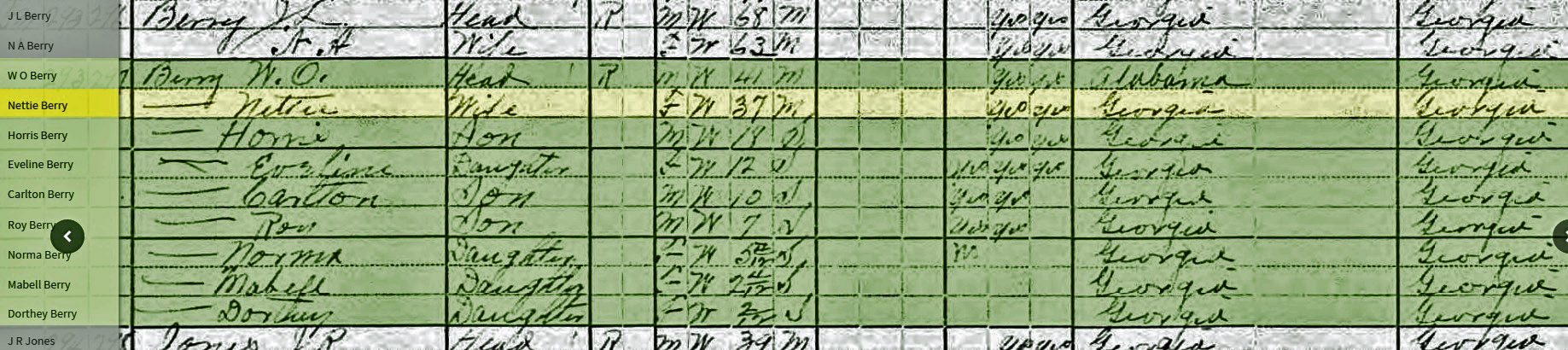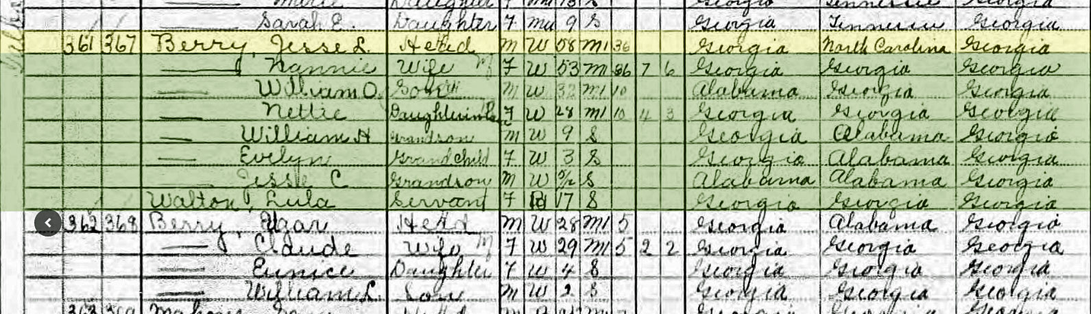- Jesse Lee and Nancy Henry Berry, Etowah Alabama and Nance, Muscogee, Georgia.