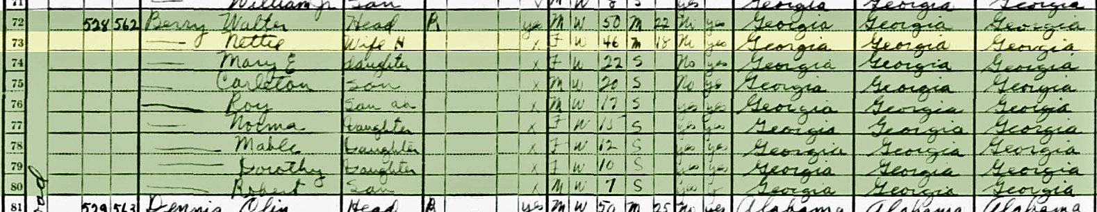 William Oscar and Nettie Anderson Berry were just married and they were living were with Oscar’s parents when the 1900 census was taken.