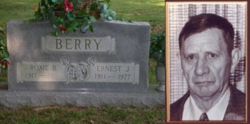 Ernest John Berry was the oldest son of Ode and Emma Berry He was born on November 25 1911 in Wayne County Tennessee. He had six brothers and sisters. Ernest John grew up and remained in Cypress Inn just like all the rest of his ancestors. On December the 24th 1936 he married Roxie Berry who was born March 5th 1917 in Wayne County Tennessee.. Roxie Berry was no relation to the Thomas Berry family who lived in the same County. At the age of 66 years old Ernest John Berry died on November 14, 1977. Roxie lived for another thirty years and just died March 1st, 2007. She had lived for ninety years in Cypress Inn Tennessee.