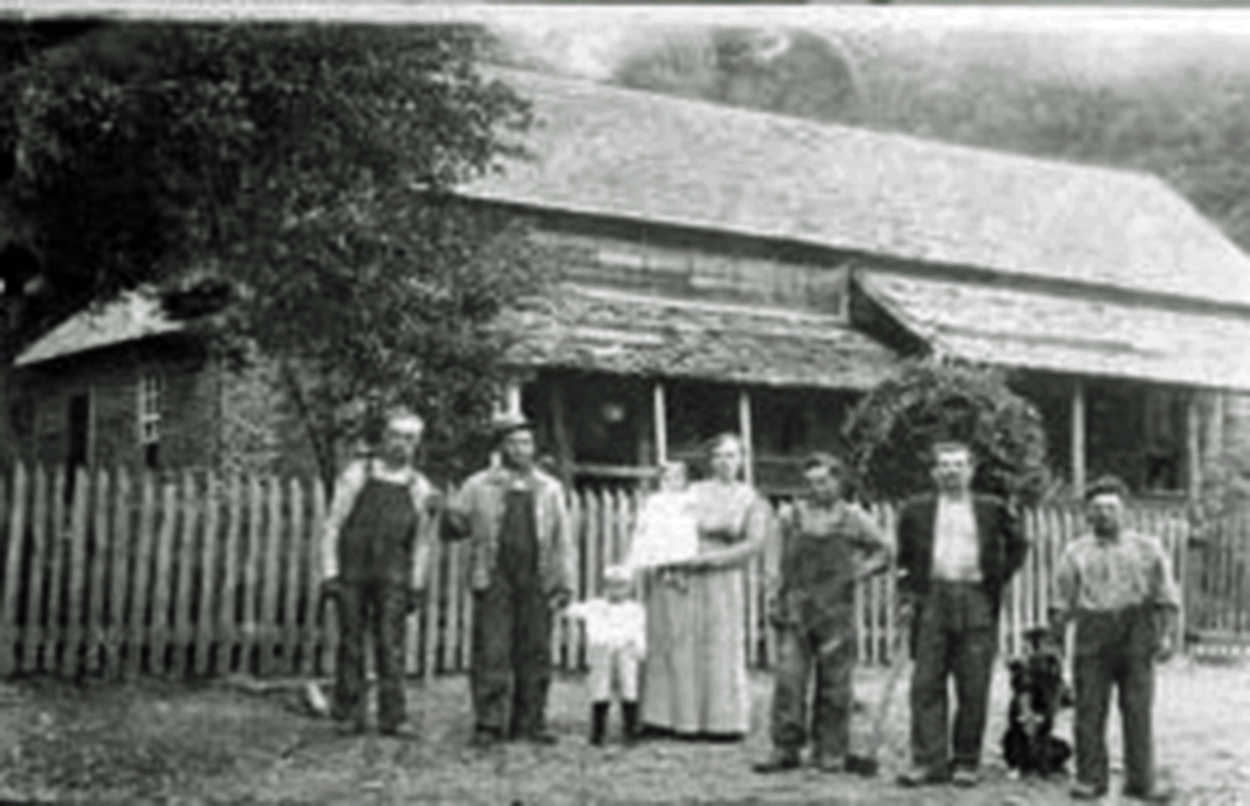 L to R Farm hand, Robert Benson, Ode Berry, Ernest John Berry, Thelma Berry (baby), Emma Lee Stults, Obie Berry, Jim Dave Berry, and Cove Berry
