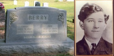 They all lived their lives there and most of them died there. One of the remarkable things about finding all our cousins there is that the curent descendants have pictures of this complete Isaac Berry line. This also includes their tombstones which I am showing beside our Cousins who are buried there. James David Berry married Melissa Harlow who was born September 17 1865 just two days after Jim Dave. Melissa was born in Lewis County Tennessee and she and Jim Dave got married about 1888 they had three sons and a daughter.ODE BERRY
